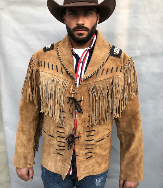 Men's Fringe Suede Leather Cowboy Jacket – Western Native American Style