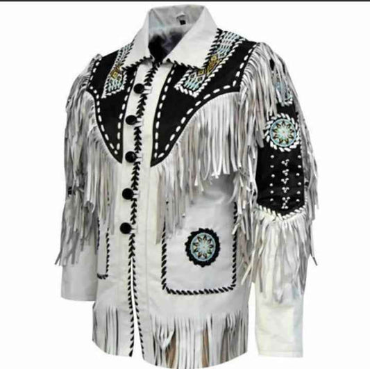 Men's Fringe Suede Leather Cowboy Jacket – Western Native American Style