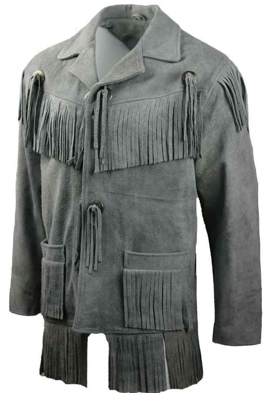 Men's Fringe Suede Leather Cowboy Jacket- ZLC-WJM-1050