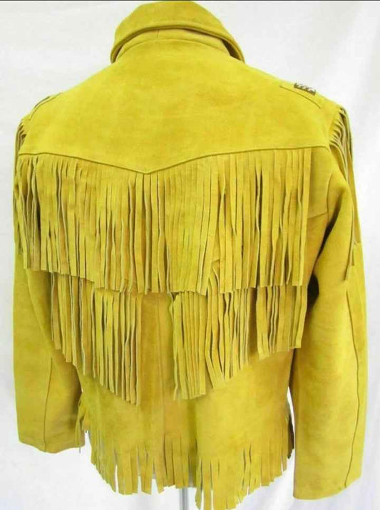 Men's Fringe Suede Leather Cowboy Jacket- ZLC-WJM-1051