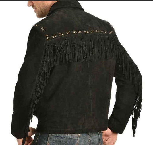 Men's Fringe Suede Leather Cowboy Jacket-ZLC-WJM-1029