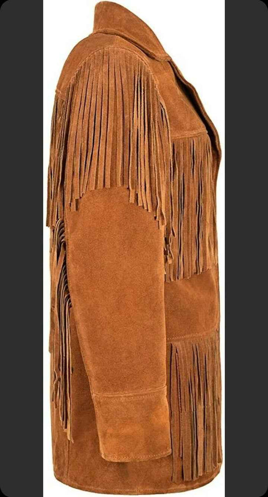Men's Fringe Suede Leather Cowboy Jacket- ZLC-WJM-1055